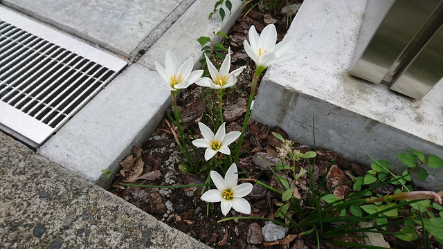 自転車で走っていたら、側溝の横に可愛らしい花、発見。調べてみたら、タマスダレ。