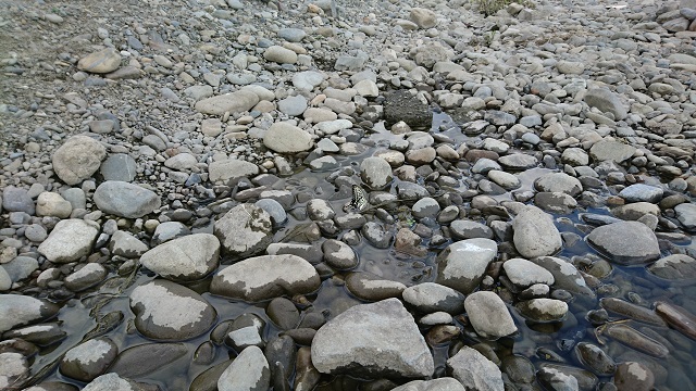河原の石ころですが、実はこの中にアゲハ蝶がいます。