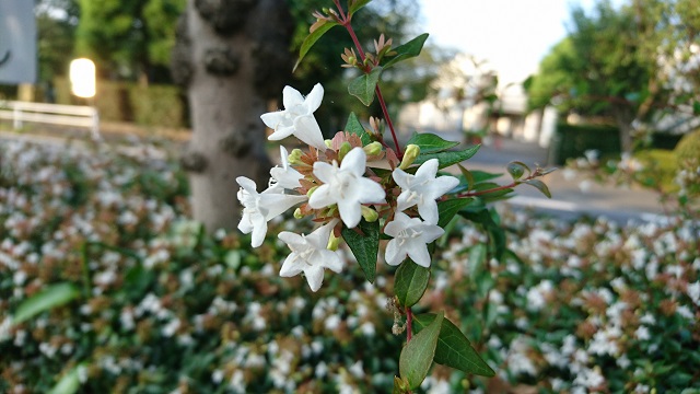 公園や道路沿いでよく見かけます。アベリアというそうです。