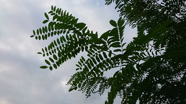 木陰で空を見上げたら、きれいな形の葉っぱ。