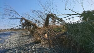今日は、多摩川を狛江方面に行ってみました。 土手からは分かり辛かったのですが、川岸を奥の方に歩いて行くと、大木が何本も倒れていました。木の根っこが大きくえぐられています。昨年十月の豪雨から四ヶ月が経ち、さすがに木は枯れて […]