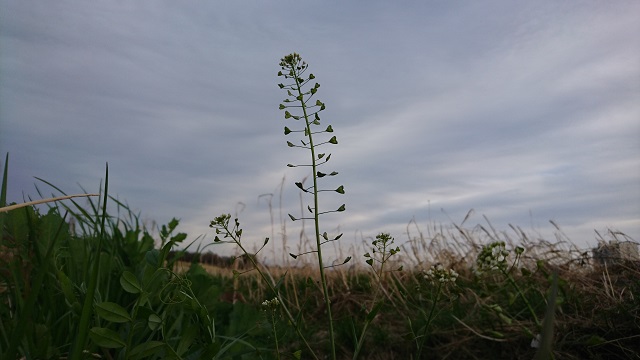 ペンペン草、正式名ナズナですね。子供の頃、よく耳元で音を鳴らして遊びました。実は今日の多摩川は風が強くて、ペンペン草、右にいったり左にいったり、撮るのが大変でした。背筋を伸ばして、空に向かって、、好きな花です。ペンペン草を調べてみたら、名前の由来は、振って鳴る音ではなく、実の形が三味線のバチに似ているからだとか。う~ん、だとしたら、三味線の音でもいいかも。イヨ~、ペペン、ペンペン、、なんちゃって。。