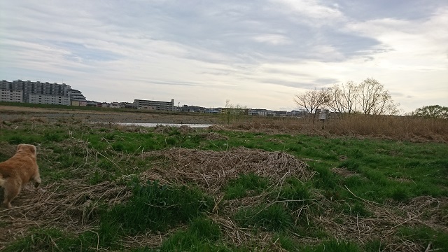 昨日、多摩川で犬と遊んだ帰り道、キジと遭遇しました。写真の左から右に、タッタッタッ、と走っていきました。とても綺麗な色で、体は緑か青色のような、顔は赤くて、絵本に出てくるような、、。この間は、川を渡った中洲で遭遇しました。中洲はヒトがあまり来ないので安全かと思うのですが、ここは通り道の横。どうして、こんな所にキジ、でした。写真は、私がキジに気が付いた後、犬も気が付いて、追いかけ始めた時のもの。この後の写真が無いのは、「やめな!」と犬を追いかけたからです。私の事だから、写真中央近くにキジがいるはず。お時間と根性があったら探してみて頂ければと思います。今日は疲れていて他力本願です。すみません。