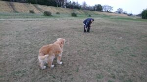 今朝は久々に、三にんで多摩川に行きました。 曇り空の下、小山と犬が、草むらでボールを見つけて、ボール遊びを始めました。ボールはかなり汚れていて、小山が投げる前に泥を落としている、その時の一枚かと。実はこの写真、結構「タメ […]