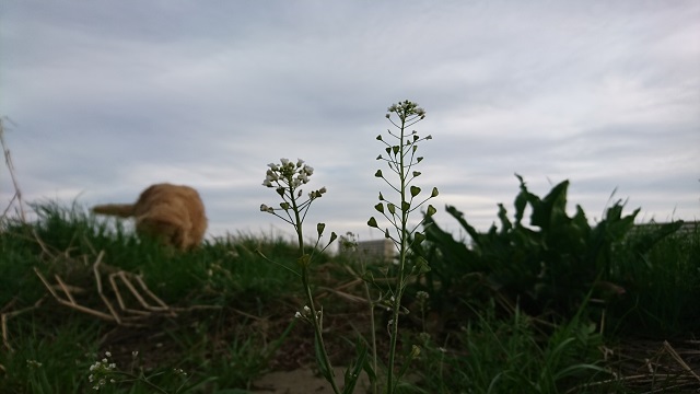 今、土手のあちこちで見かけます。そう、ペンペン草、別名ナズナです。