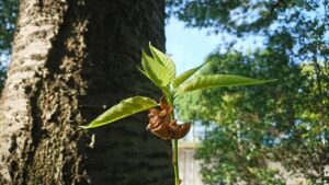 今朝、セミの抜け殻を見つけました。 多分、羽化したばかりかと。抜け殻にセミと繋がっていた白い糸が見えています。抜け殻は、あちこちの木で見られたのですが、目に留まったのは、か細い枝に付いていたから。横に立派な木があるのに、 […]