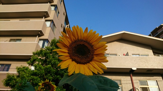 綺麗ですね。夏を代表する主役級の花かと思います。「いないいない」を撮ったのは5日前。「ばあ」はその翌日です。高さは私が手を伸ばしたより高い所。朝日を見て咲いていました。