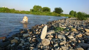 河原の中で、犬が私の足にしっかりと乗っています。 なぜ、浅瀬で背筋を伸ばして、私に くっついているかと言うと、、 ここからは、昨日の続きです。 昨日の川は台風の影響で水の量が多く、流れも緩やかなようで大きく […]