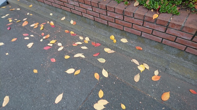 早朝、散歩道。きれいな落ち葉が落ちていました。
