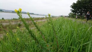 この時期早朝、土手では待宵草の花が見られます。 名前どおり宵を待って咲く花で、朝には萎んでしまいます。一日草で、下から順番に咲いて、上へ上へと伸びてい…