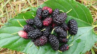 どこまでも好きです、桑の実。 明け方までの雨で木も濡れていたのですが、滴を被りながら、めげずに桑の実採りです。手だと乗り切らないので葉っぱを一枚お皿代…