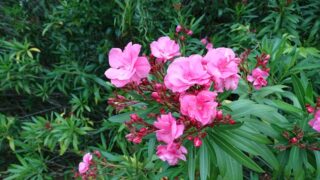 多摩川の土手、稲城大橋の近くを走っていたら、鮮やかなピンク色の夾竹桃(キョウチクトウ)が咲いていました。 綺麗ですね。夏の始まりを感じさせてくれる花か…