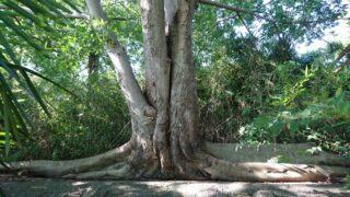 根っこの木の所を抜けていくと、雑木林が続きます。 木漏れ日が足元に揺れて、木々の間からも朝の風が運ばれてきて、走っていても苦しさが和らぐ所。写真からは…