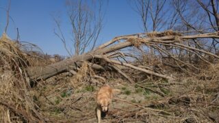 今日は、多摩川を狛江方面に行ってみました。 土手からは分かり辛かったのですが、川岸を奥の方に歩いて行くと、大木が何本も倒れていました。木の根っこが大き…