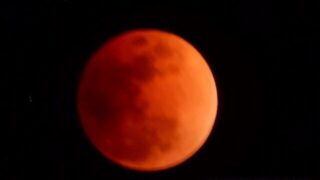 これは、夜九時頃の写真です。 月が、左下から欠け始めています。そして一時間後、月は殆ど地球の影に隠れて、先程見に行ったら、月は赤っぽくなっていました。…