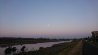昨日夜明け前、正面に真ん丸お月様。 川霧の写真を撮った後、府中方面に向かって走っていたら、空がピンク色に染まっていて、その中にお月様発見。実は写真の左…