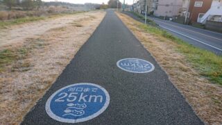川向こう、川﨑側の多摩川の土手です。河口まで25㎞と書かれています。 今朝は久々に橋を渡って、川﨑側に行ってみました。下流に向かって走っています。こち…