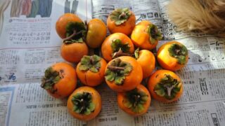 • 柿をいただきました。昨日、木から採ったそうです。 店に売っている柿と違って、一つ一つ個性があって、美味しさが未知の感じがして、何とも好きです。甘さ固さ…