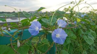 多摩川の川向こう、川﨑側の土手に咲いていました。多分、マルバアサガオ、かと。 朝、走っていたら優しく目に飛び込んできました。花は3~4㎝の小ぶり。何と…