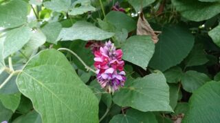 この時期、多摩川で見かけます。調べてみたら 葛の花のようです。 うっそうとした葉っぱの中に、目を引く赤紫の花。そうかあ、葛の花だったのですね。ところで…