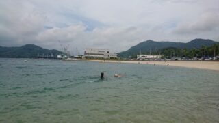 瀬戸内海の伯方島。 曇り空の中、人もまばらの海岸で思いっきり泳いできました。フタリでかなり沖合まで行きました。小山は、、勿論見学です。撮影をお願いした…
